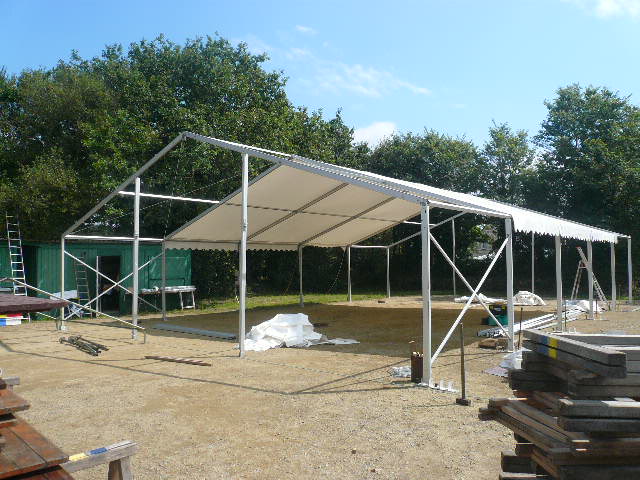 Quelques jours avant(il nous faut 4 jours pour mettre tout en place) c'est la préparation des diverses machines ou accessoires comme ici le pressoir, ou ici l'armature du grand chapiteau(2 fois 300m2)