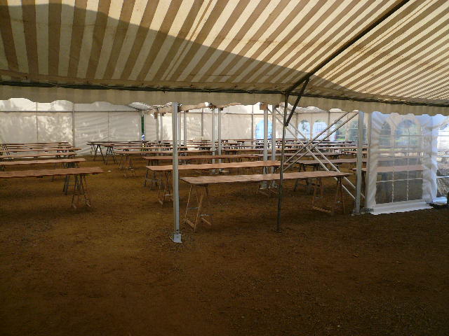Les tables sont en place, sous le Grand Chapiteau