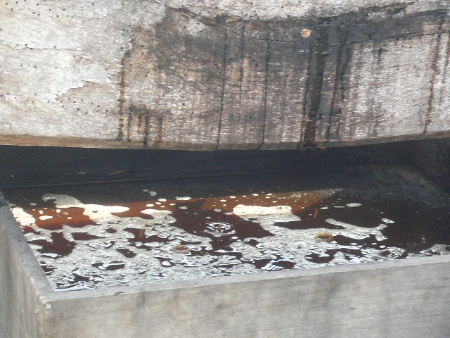 Au fait vous voyez que ce pressoir sur roues a ses roues à demi enterrées c'est pour lui donner vu sa vieillesse une meilleure stabilité.