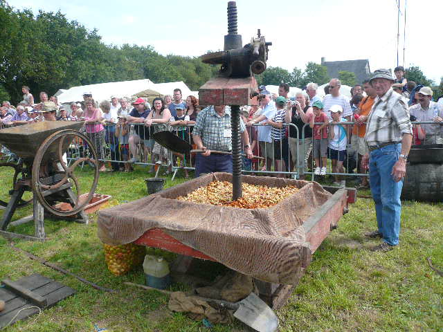 De la bonne pommes broyées "y a plus qu'à". Disposition première sur le pressoir (Technique de la toile de jute une autre technique est celle de couches de paille)