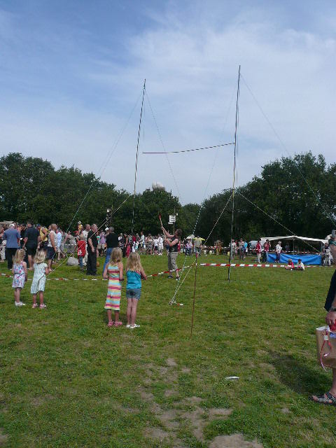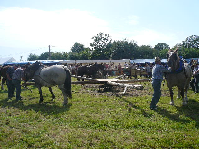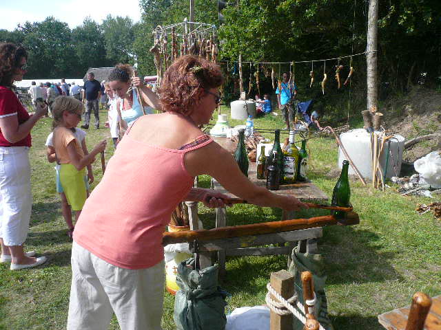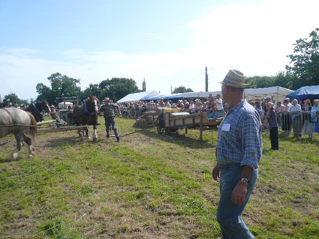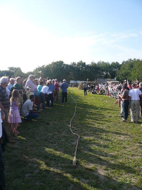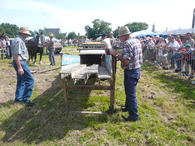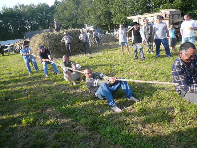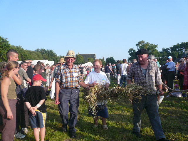 Le lancer de gerbes ou il faut à la fois rivaliser de forces et d'adresses. Les gerbes sont remplacées par des sacs avec du crin. Le poids variera ainsi que la hauteur à franchir