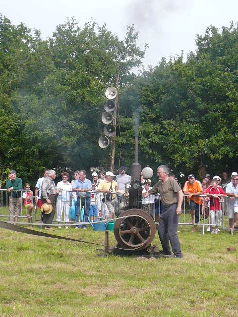 Et oui on n'arrête pas le modernisme. Voici une batteuse de 1930 (chargement par le haut) entraînée par courroie à un moteur à pétrole de l'époque. Ecoutez.....teuf,teuf,teuf