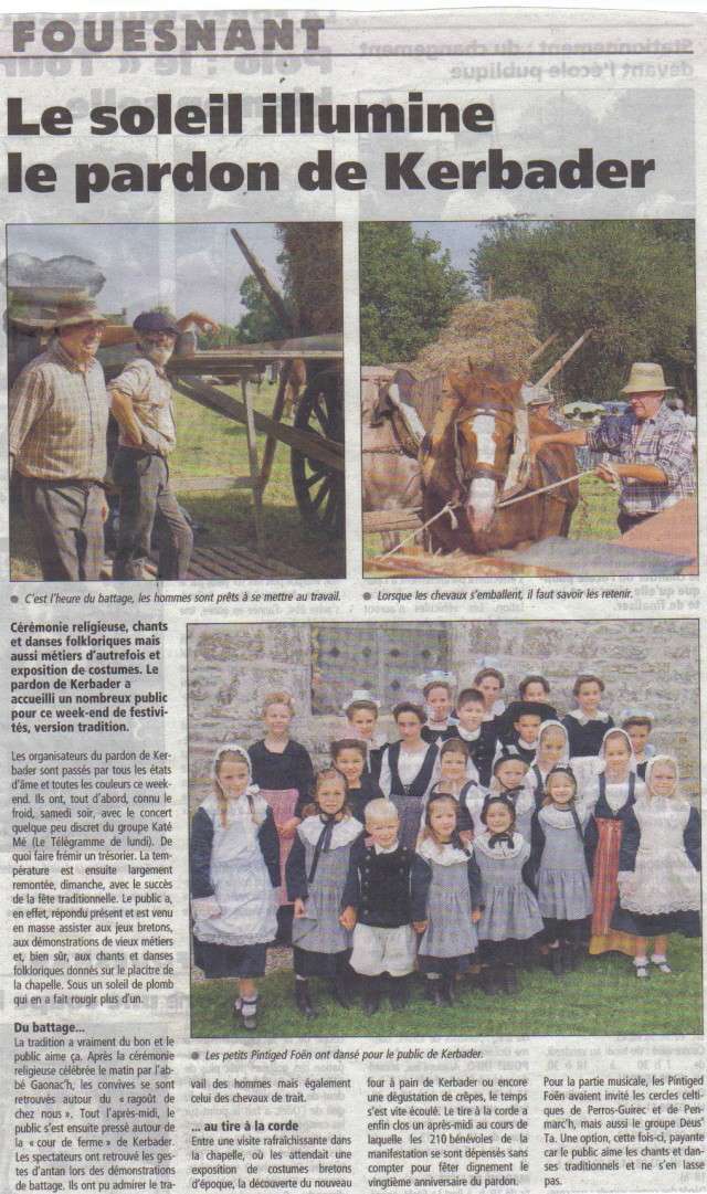 Mon ami Christian du journal Le Télégramme était également ce jour là au Pardon je joins son article paru mardi 28/08/07