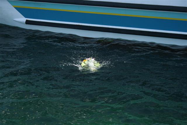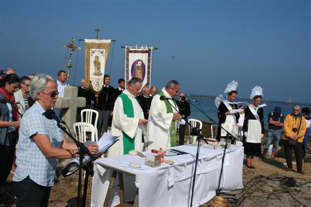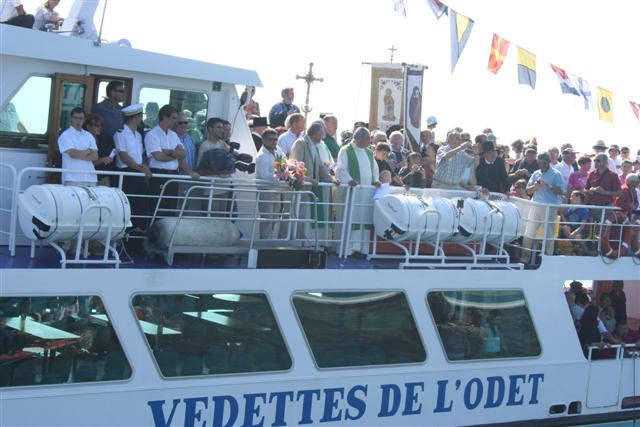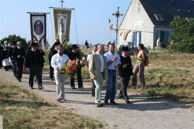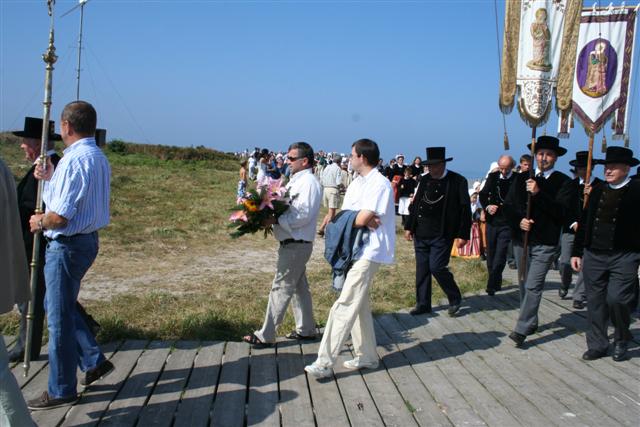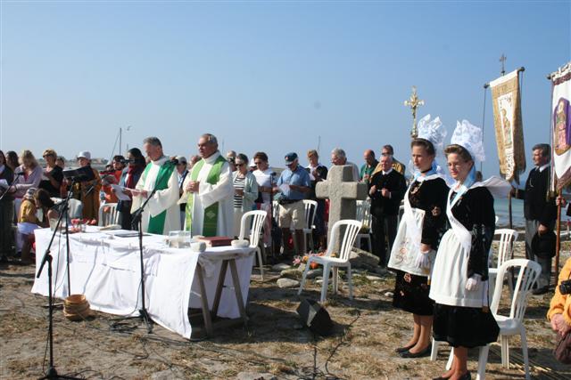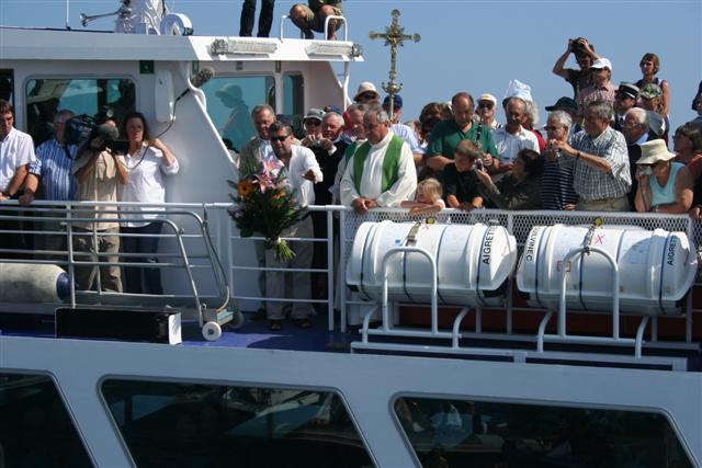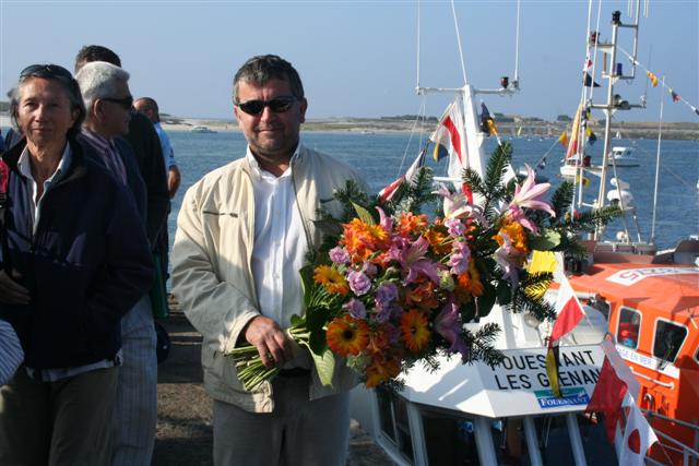 Voici Lucien Le Fur (marin pêcheur à Beg-meil). C’est à lui que revient l’honneur de déposer la gerbe de fleur en mer lors de la célébration.