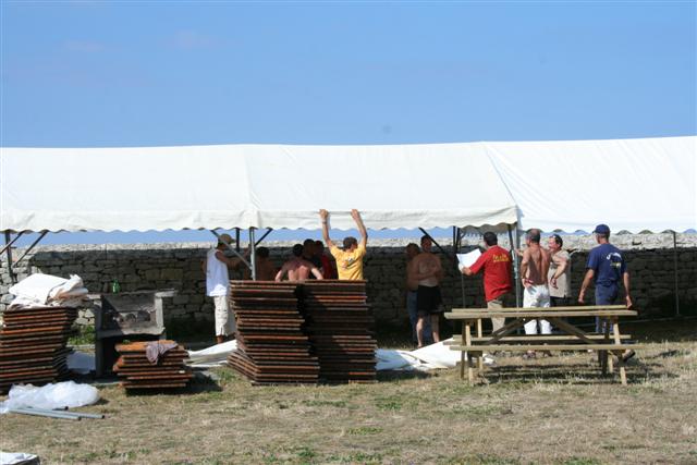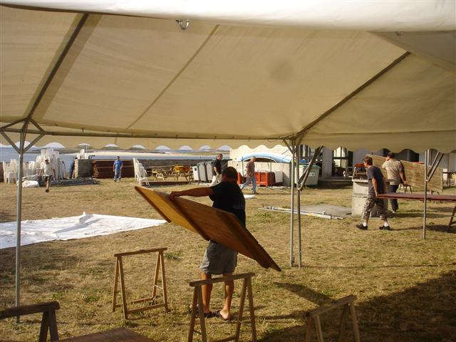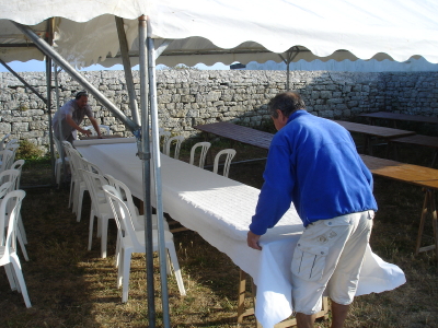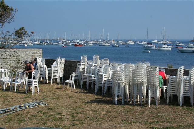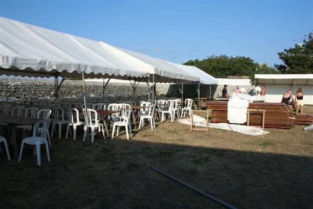 Les chaises ,tables et tout le matériel est d’abord entreposé