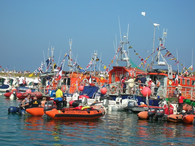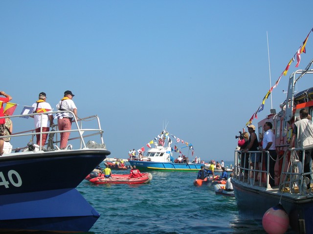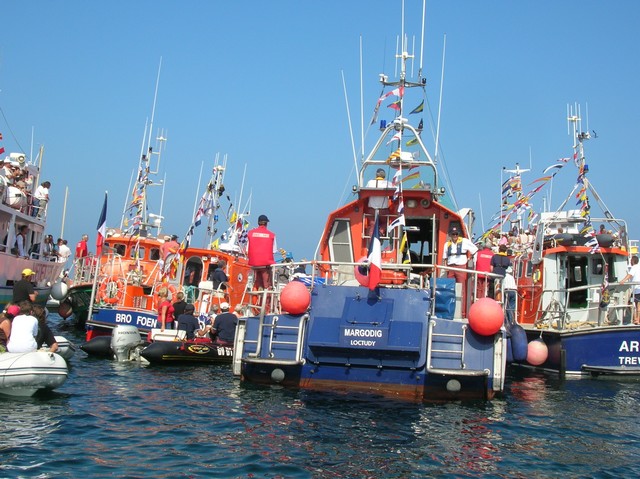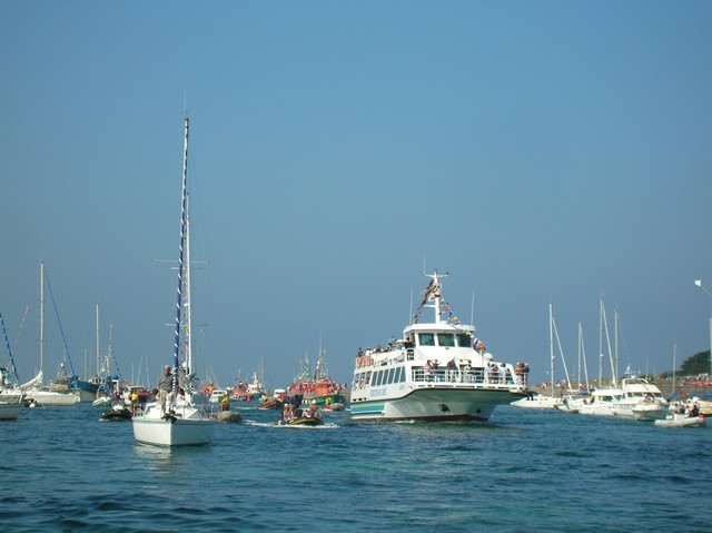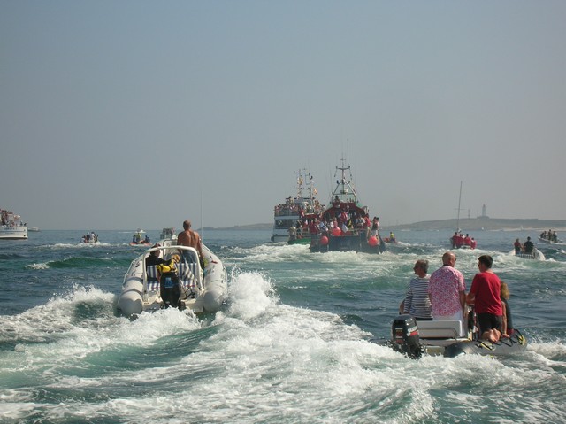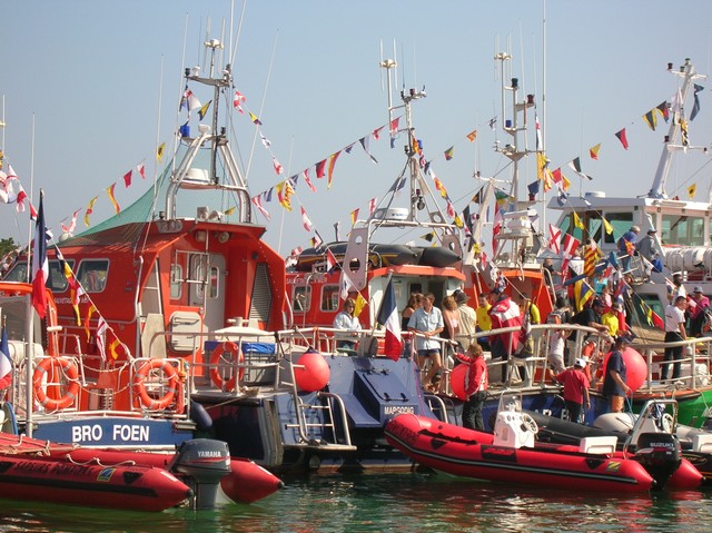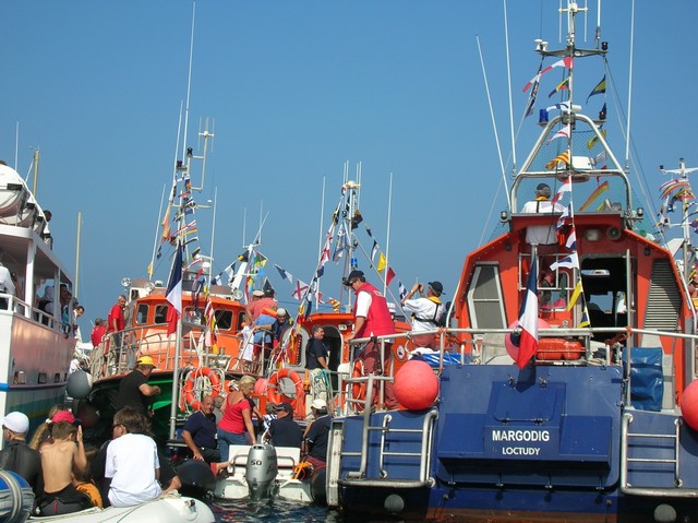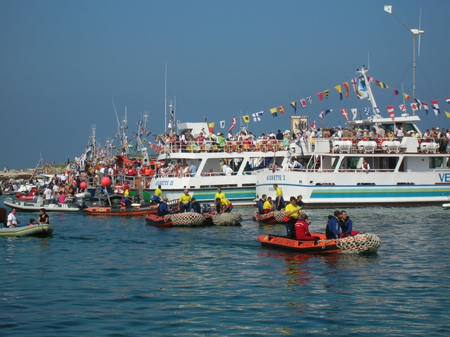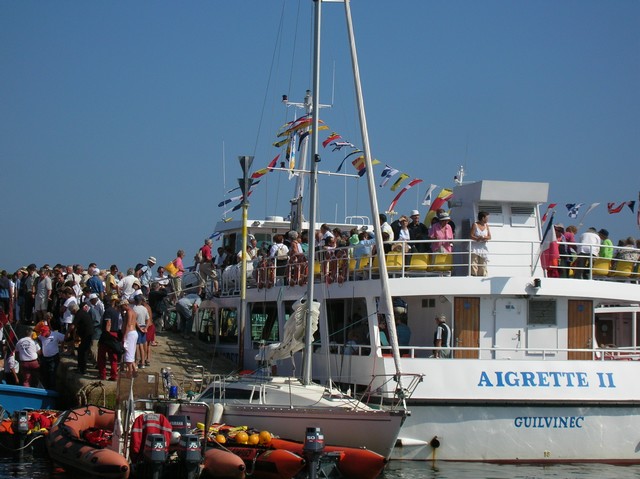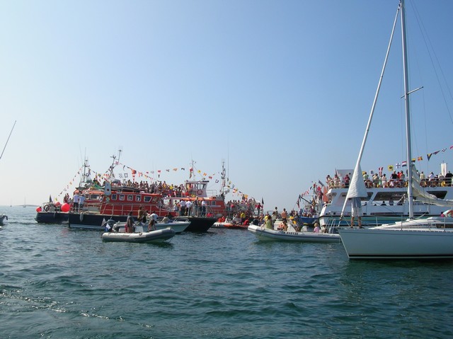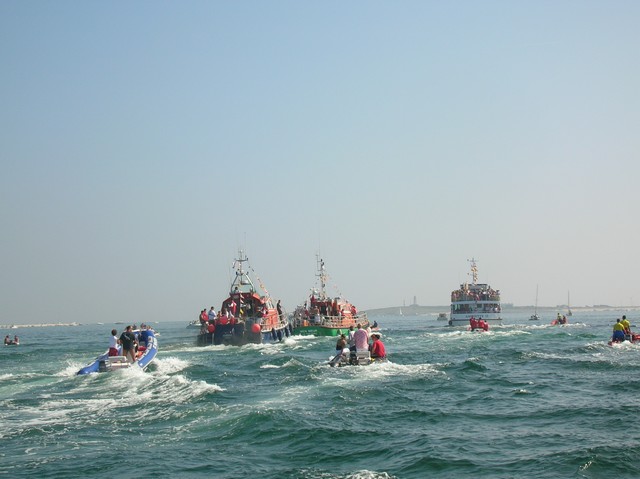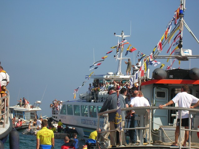 La foule embarque sur les vedettes mises à dispositions qui vont rejoindre le lieu de Bénédiction de la Mer