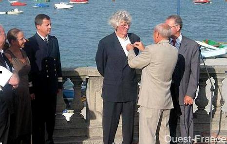 René Bernard a profité de la célébration des 40 ans de la station SNSM de Fouesnant pour mettre à l'honneur Albert Moulinec, le patron de la vedette locale, qui a été nommé Chevalier de l'ordre du Mérite maritime par décret en janvier 2005.
