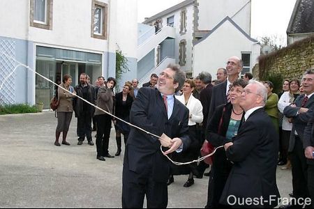 Juillet. Inauguration des aménagements du bourg. Nouveau plan de circulation, avec un sens unique rue des Glénan et création des nouvelles places de stationnement à l'arrière de la crêperie de Kervastard.