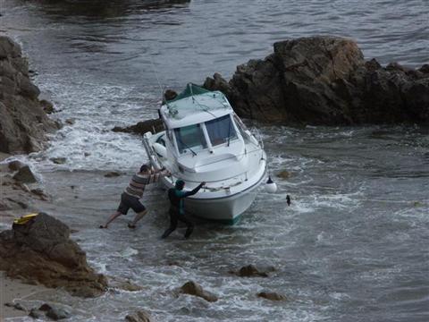 Vers 9 h00, le 23 juillet 2007 après une nuit très agitée dans la baie ( vent de force 7 orienté Sud, Sud Est ), plusieurs propriétaires de bateaux ont eu le malheur de découvrir leur bateau sur les rochers. Aidés par l’équipe de la SNSM certains auront plus de chance que d’autres de les récupérer intacts.