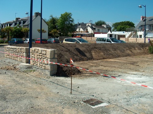 Travaux : Avril /mai 2009, finalisation d'un muret en pierres entre le parking derrière Kervastard et l'emplacement du manège