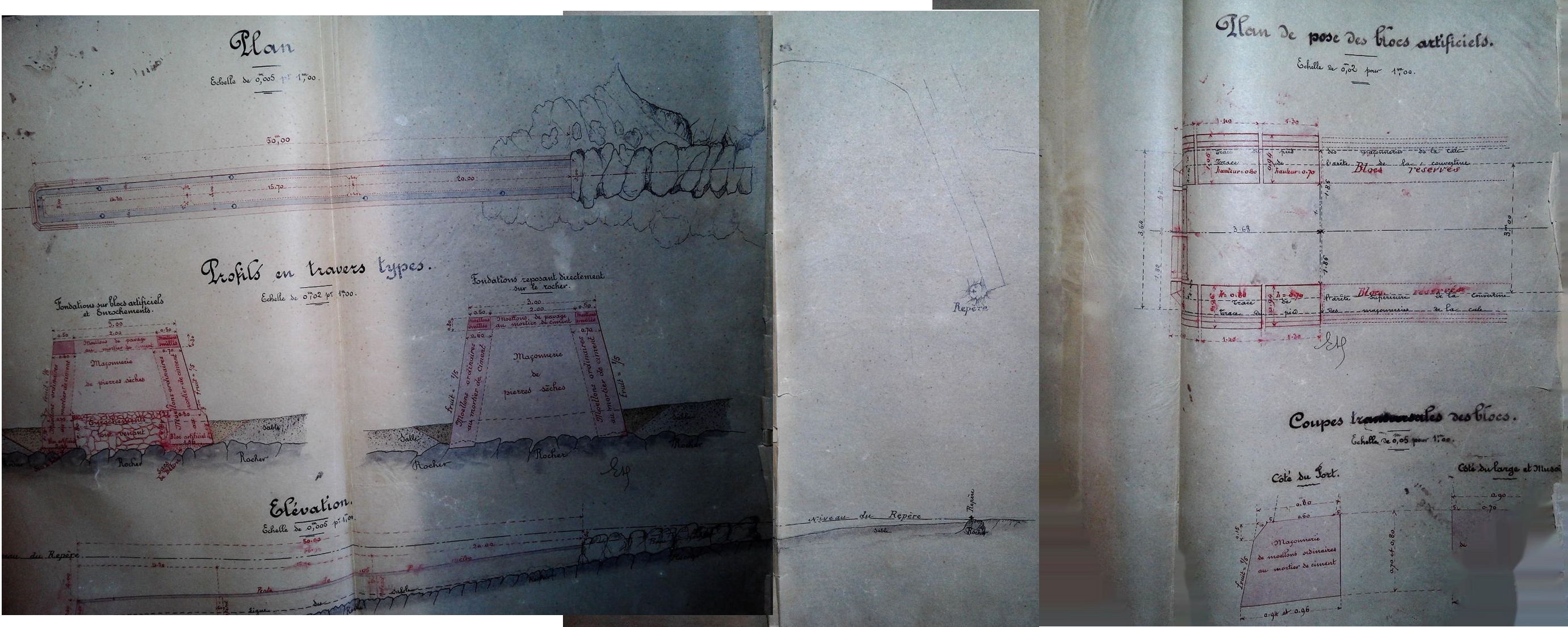 Le 13 octobre, le conseil décide de construire un môle abri de 160 m pour assurer la protection des mouillages des marins de la commune. On peut distinguer sur la droite les cabanes qui servaient à Jos Caradec pour le stockage du matériel et de bureau avant que l'abri du marin soit construit.