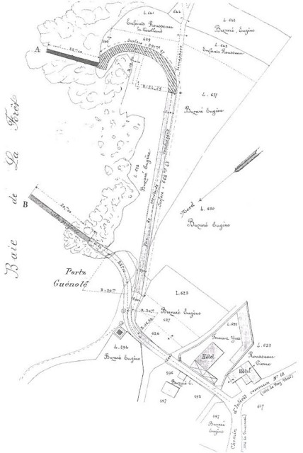 A cette époque un double chemin passe sous le parc du Grand Hôtel. L'accès à la cale se faisant en partie basse. Le chemin en hauteur conduisant vers les terres de d'Eugène Buzaré