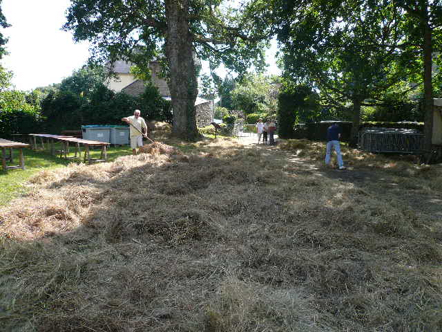 Demain dimanche on le sait la pluie sera au RDV alors prévoyance......on étale de la paille sur le chemin d'accès…