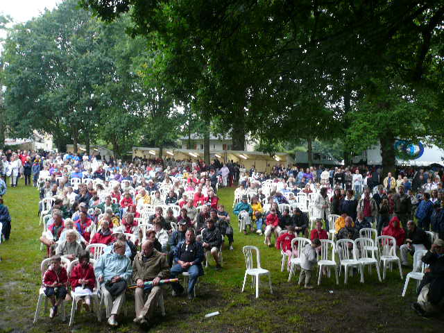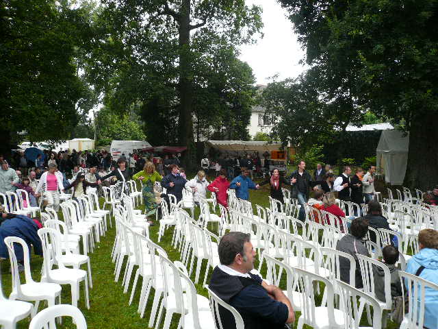 En fin d'aprés midi les chaises sont de nouveau "clairsemées" malgré le groupe de Fest Noz Deus Ta qui essaient de faire danser le public. Succés plus que mitigé la météo n'est pas bonne.