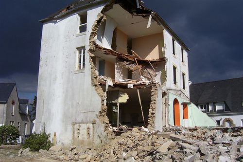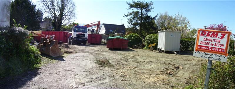 L'intérieur de l'Hôtel est démoli, l'entreprise DEM7 de quimper sécurise le périmètre et prépare la démolition du bâtiment