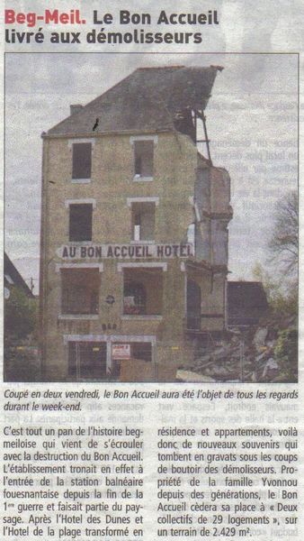 "Depuis la mi-avril, il ne reste plus rien de l’hôtel « Au Bon Accueil » de Beg-Meil. Avec lui, disparaît l’un des