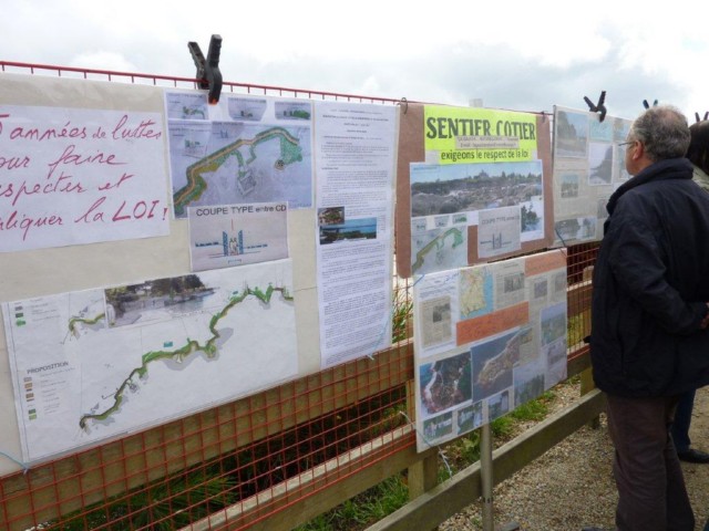 « Après l'annonce d'un tracé établi, cette fois, enfin en haut de falaise sur toute la longueur de la propriété Lascar, la satisfaction était générale. Satisfaction qu'il a malheureusement fallu tempérer ! En effet, le choix des modalités du tracé ayant été laissé à la libre convenance du propriétaire, celui-ci propose de réaliser des aménagements qui sont bien éloignés d'une véritable servitude côtière...